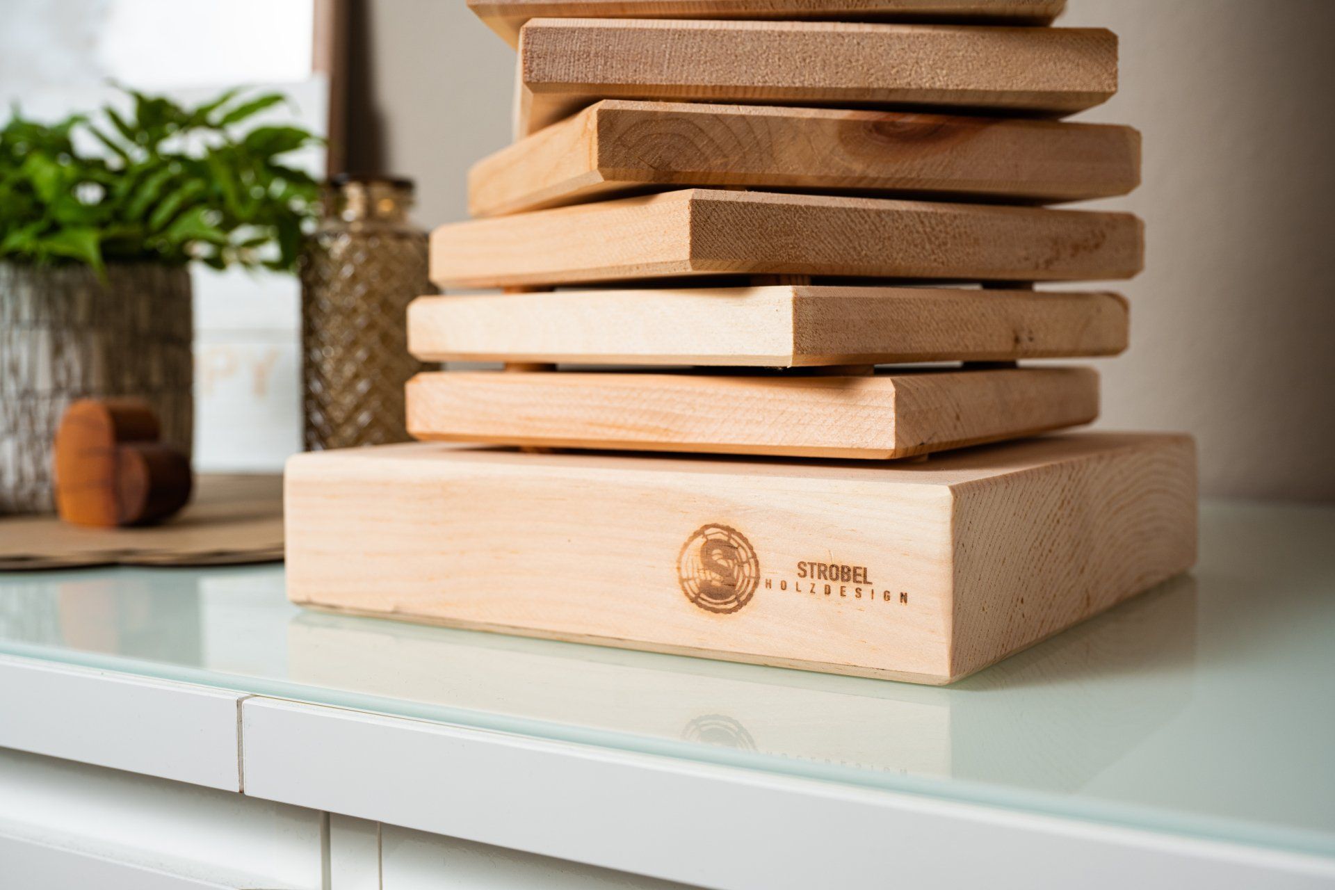 Unsere handgefertigten Holzwerke setzen individuelle Akzente und verleihen Deinem Zuhause den besonderen Charme.